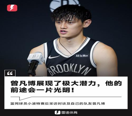 赛后篮网球员小波特接受了记者采访,小波特表示曾凡博展现出了很大的潜力,他的未来会一片光明。